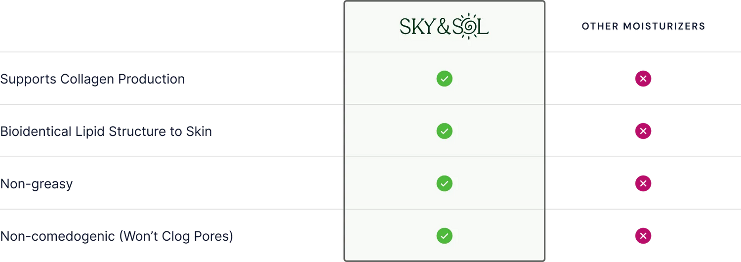 Your skin produces a unique blend of natural oils that’s tough to replicate—so we don’t try to fake it. At Sky and Sol, we formulated the Everything Cream with grass-fed beef tallow because its fat profile is bioidentical to your skin’s own lipids.