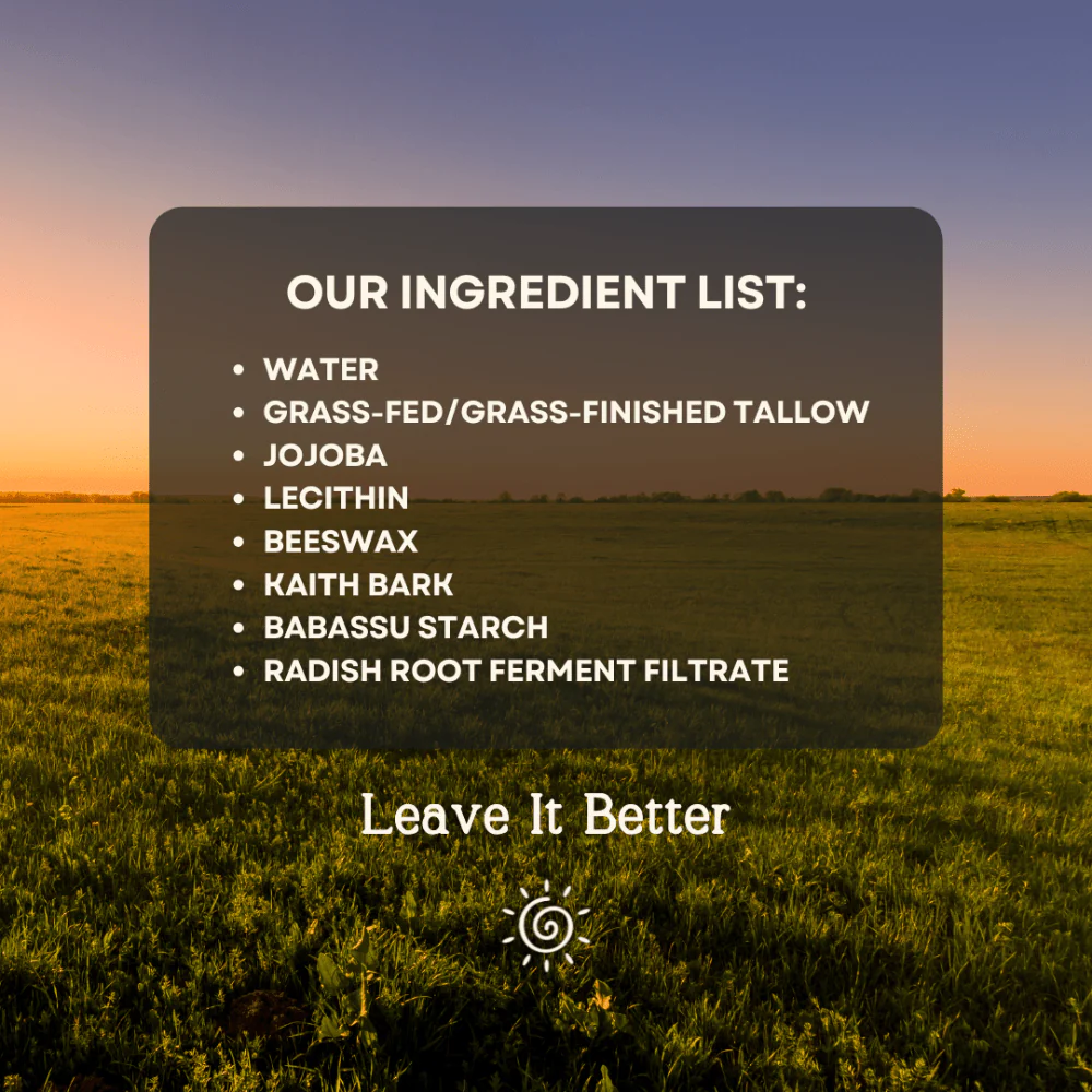 We source our tallow from regenerative pastures in Australia, where cows are 100% grass-fed and grass-finished and the fields are not sprayed with pesticides. This method restores soil health, captures carbon, and keeps our tallow pure and toxin-free.